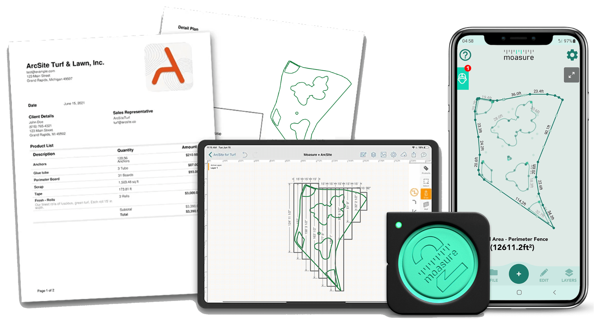Meet makkelijk terreinlocaties (binnen en buiten) met Moasure®. Breng deze metingen onmiddellijk over naar ArcSite met één druk op de knop. Met Moasure® kunt u lijnen, hoeken, bogen, oppervlaktes en meer met bewezen nauwkeurigheid meten. Wanneer u deze in ArcSite importeert, elimineert u eventuele meet- en prijsfouten.