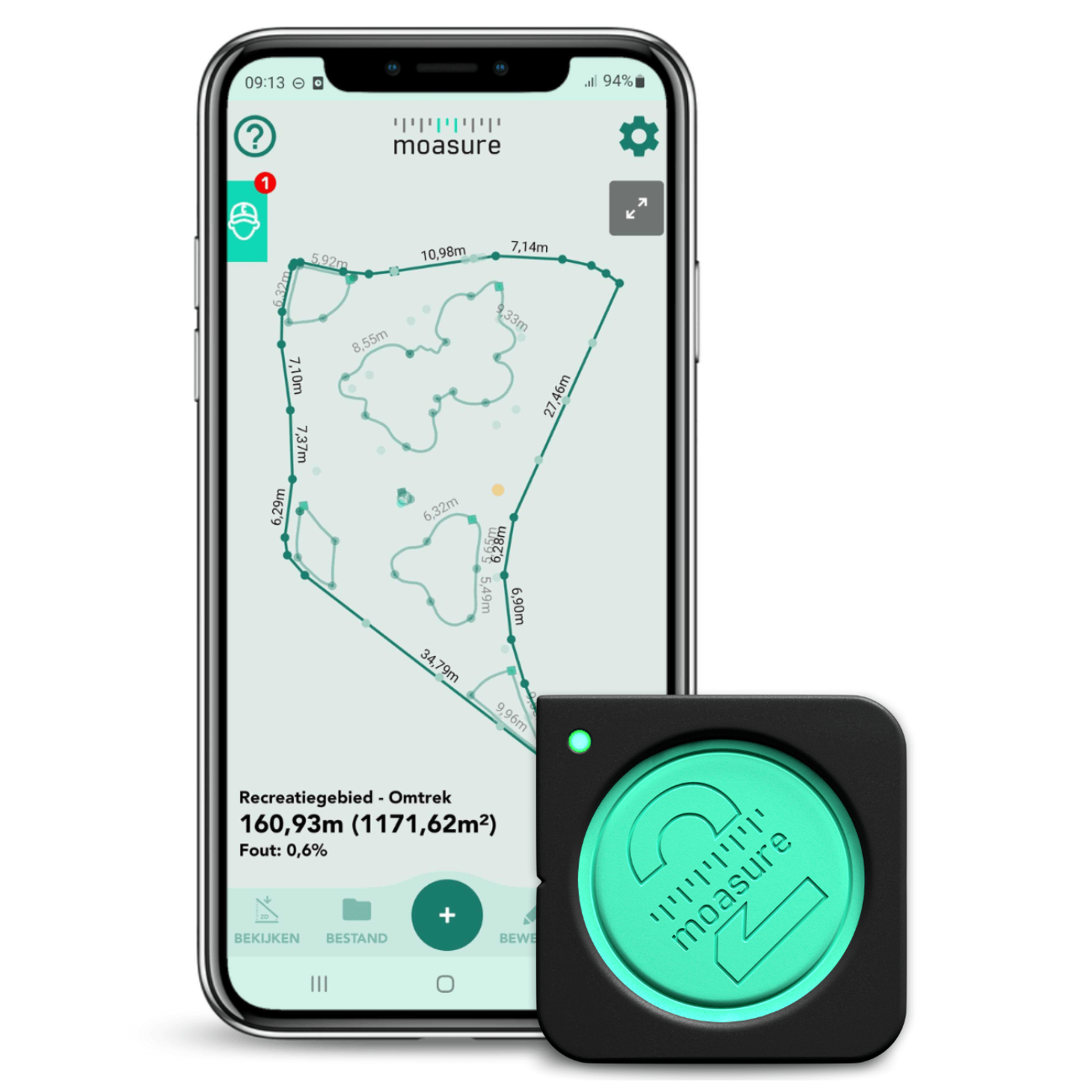Van het meten van complexe vormen zoals hellende gazons of trappen, tot het berekenen van hoogte en afstand of het assisteren bij topografische metingen - maak moeilijk meten makkelijk met Moasure.