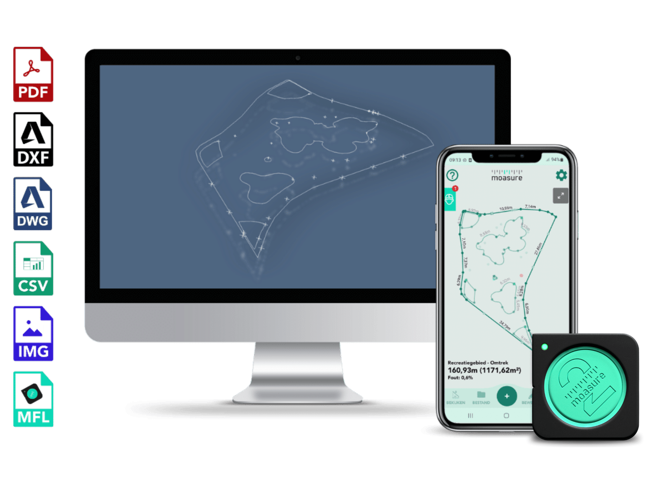 Van het meten van complexe vormen zoals hellende gazons of trappen, tot het berekenen van hoogte en afstand of het assisteren bij topografische metingen - maak moeilijk meten makkelijk met Moasure.