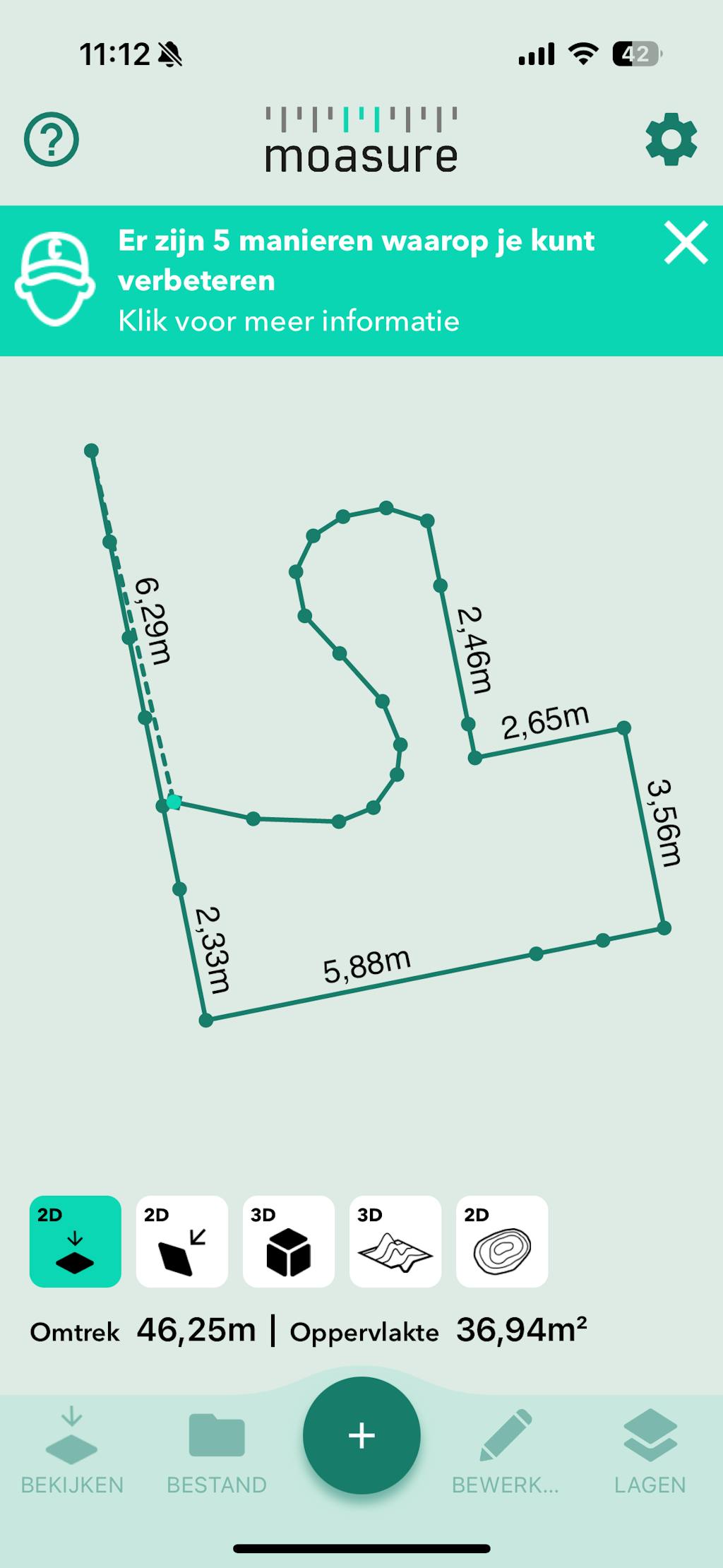 "Moasure is echt een enorme tijdbesparing geweest. Ik had snelle en nauwkeurige metingen nodig – en de oude methode met een meetwiel gaf ons simpelweg niet genoeg nauwkeurigheid. Met de Moasure hebben we het terrein opgemeten en de hellingen en afmetingen voor een keerwand bepaald. Het werkte perfect en we hebben zelfs de opdracht gekregen! De klant was zo onder de indruk dat het werk meteen is toegekend én volledig betaald bij afronding van het project.
